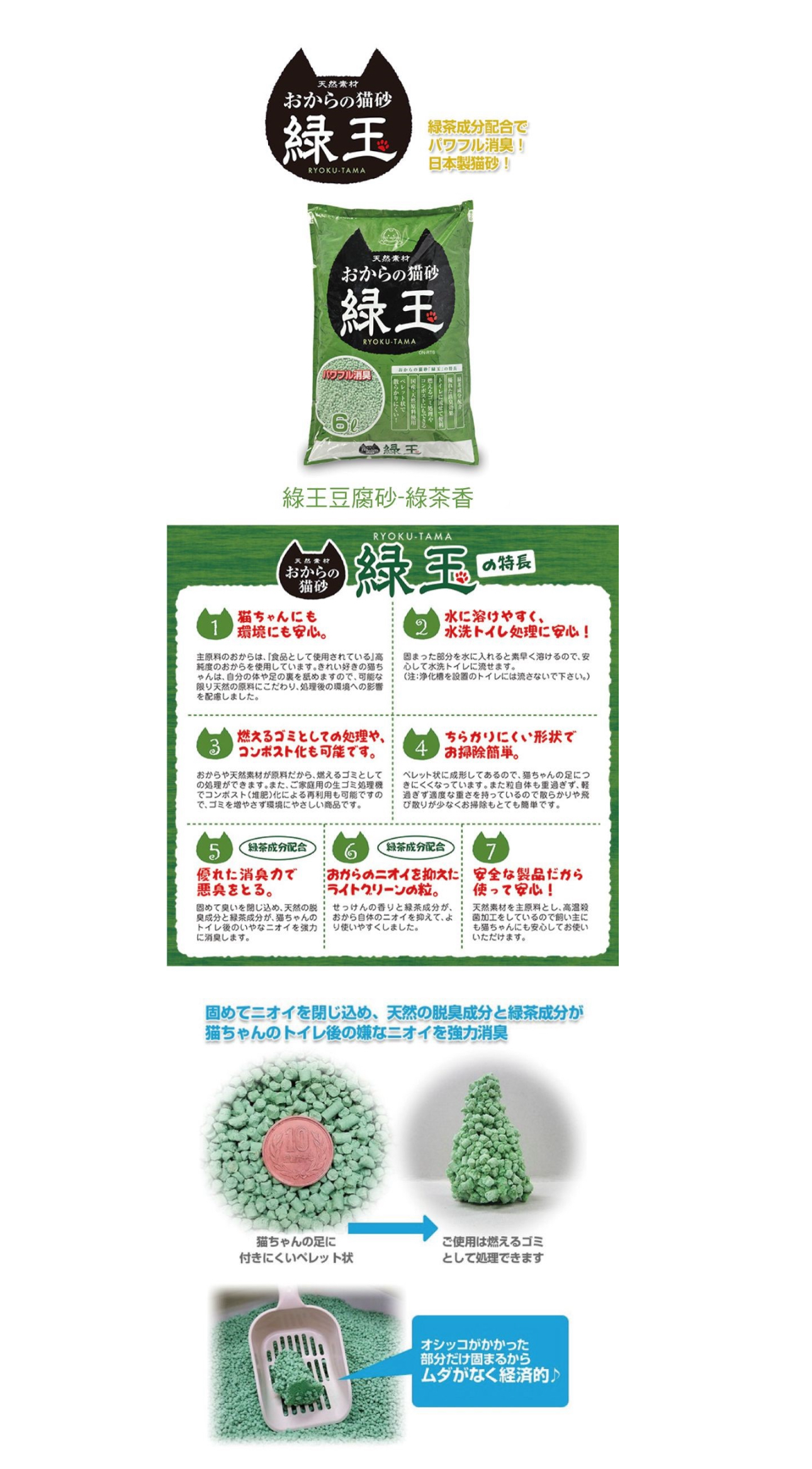 日本 HITACHI 綠玉豆腐貓砂以真正的高級綠茶精華製成,經過高溫加工處理,散發出清新的氣味,為您的居家環境增添一抹自然芬芳。