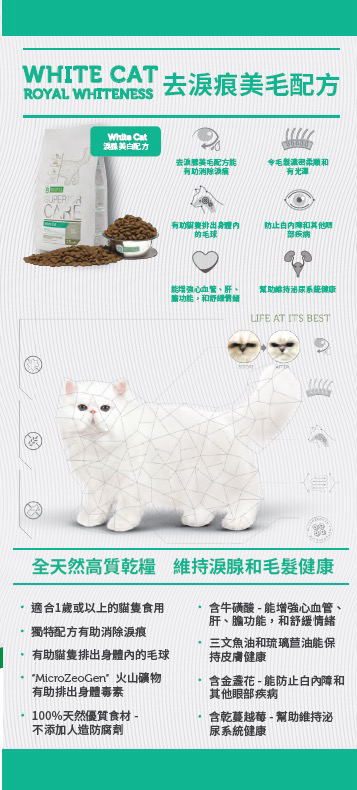 - 含有刺激胡蘿蔔素形成的DL-蛋氨酸,對維持白色和有光澤的外衣也很重要。