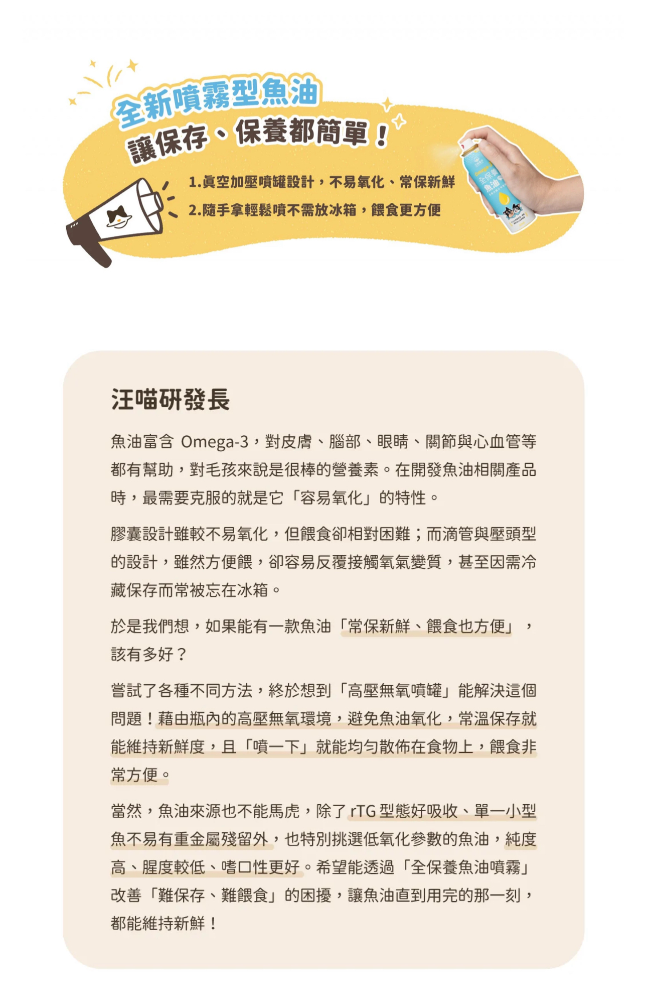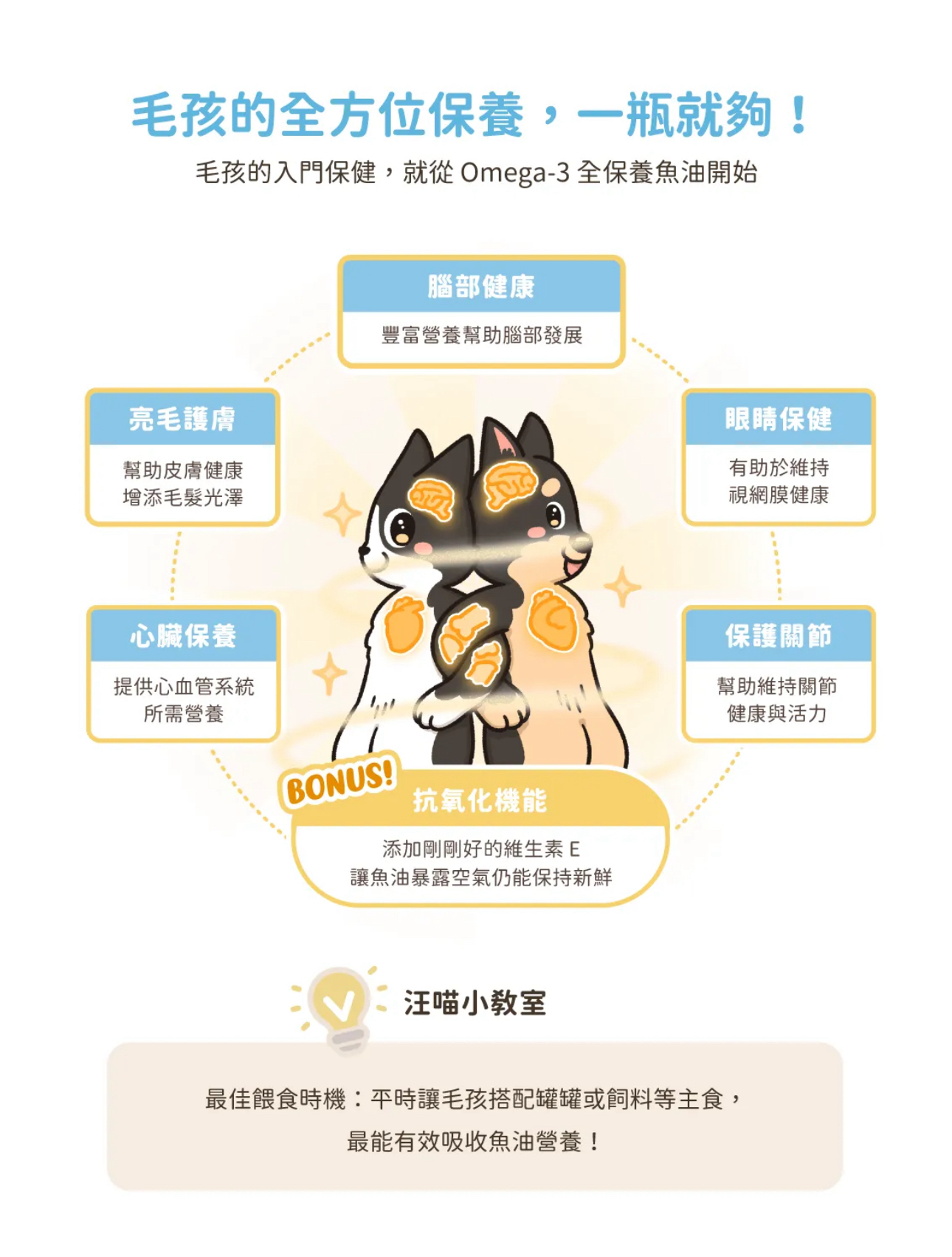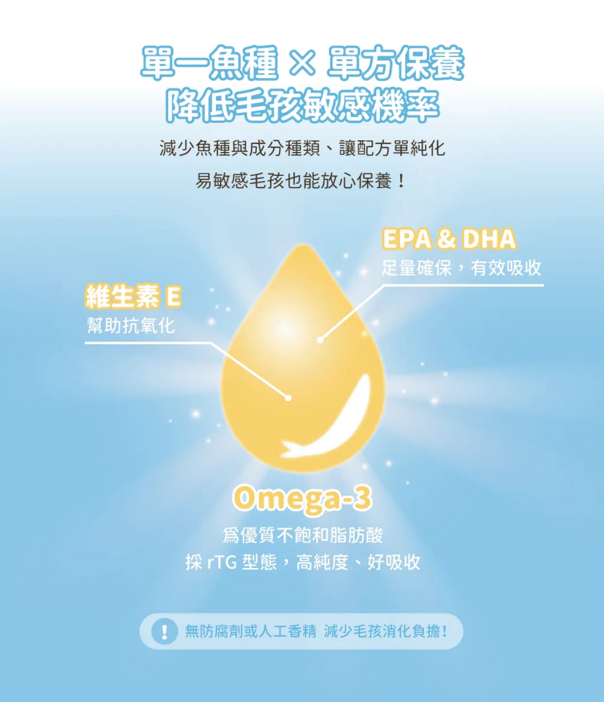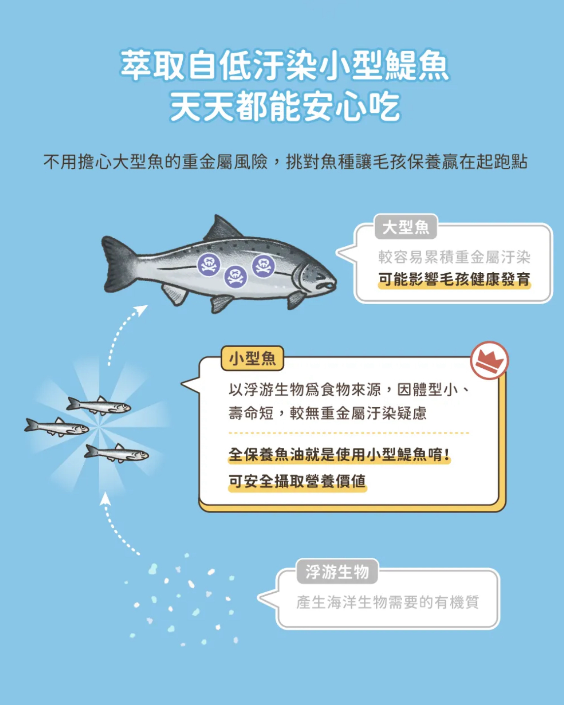 • 單方保健 X 單一小型魚種,減少毛孩過敏機率