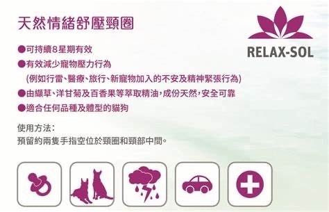 有效減少狗的壓力行為,例如行雷、醫療、旅行、新寵物加入的不安及精神緊張行為,能使狗感到鎮定,安定,放鬆。