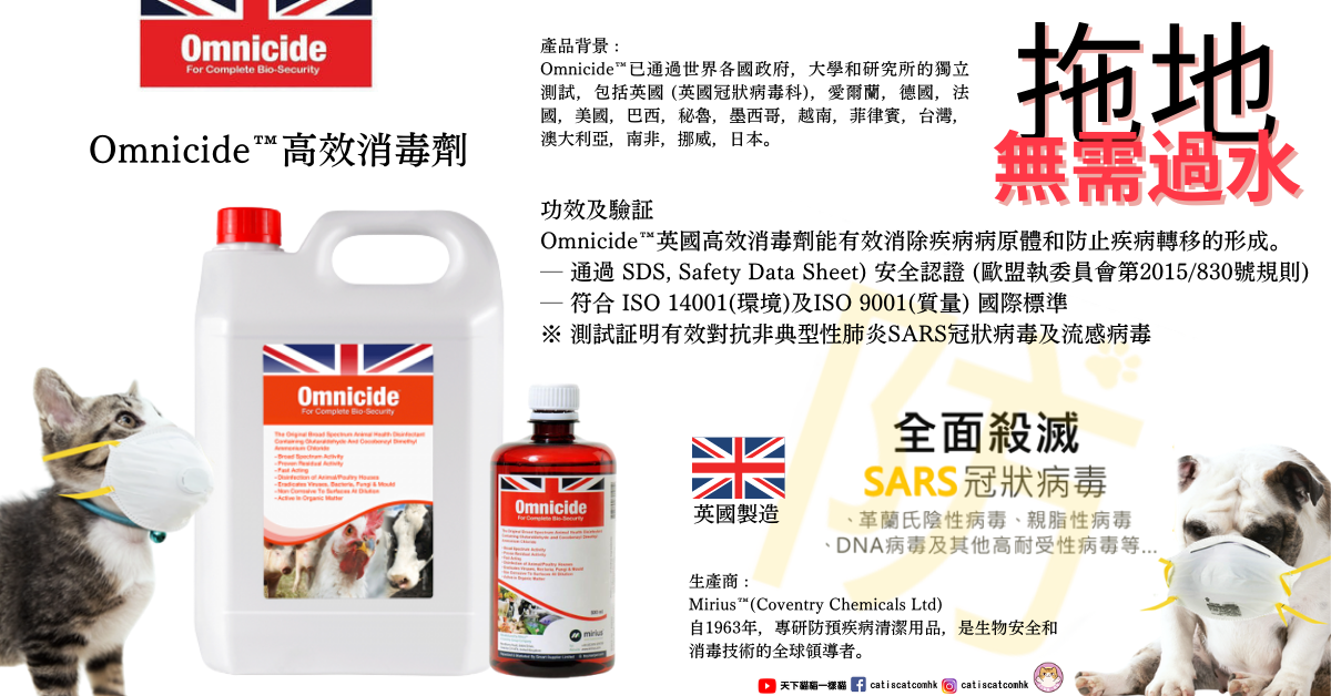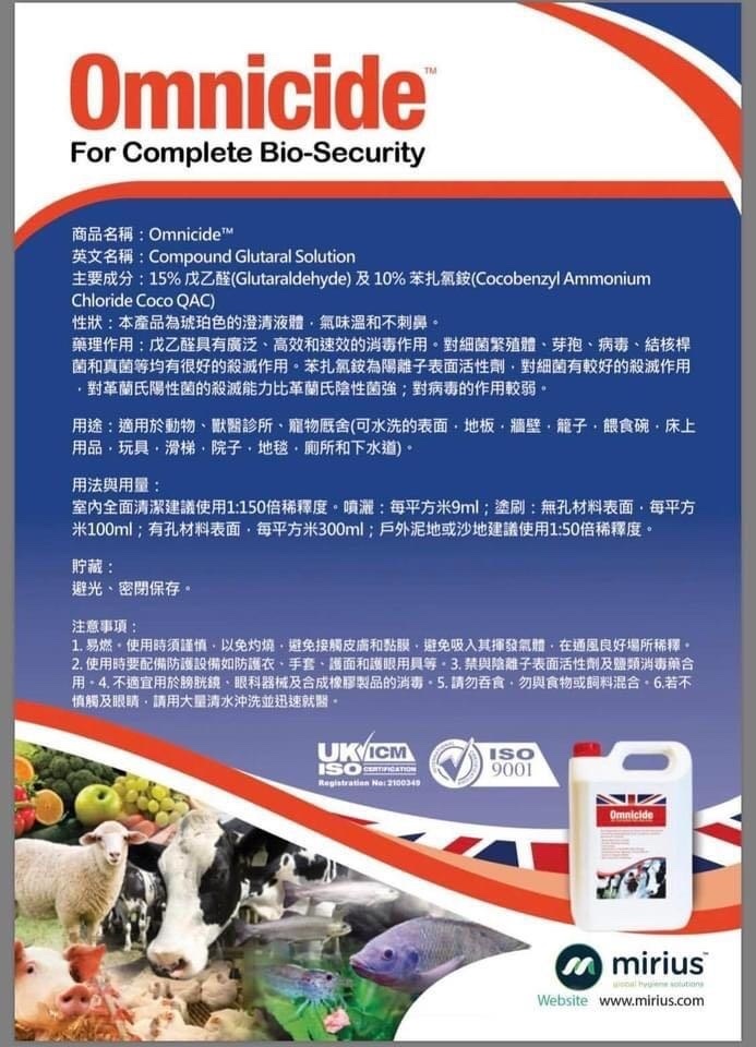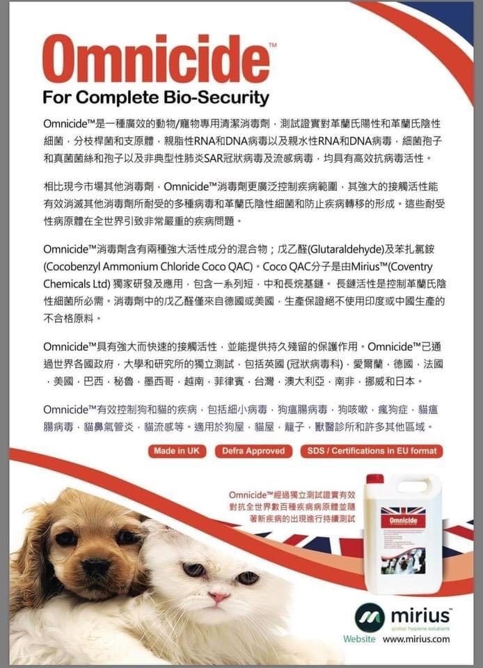 Omnicide™英國高效消毒劑能有效消除疾病病原體和防止疾病轉移的形成。