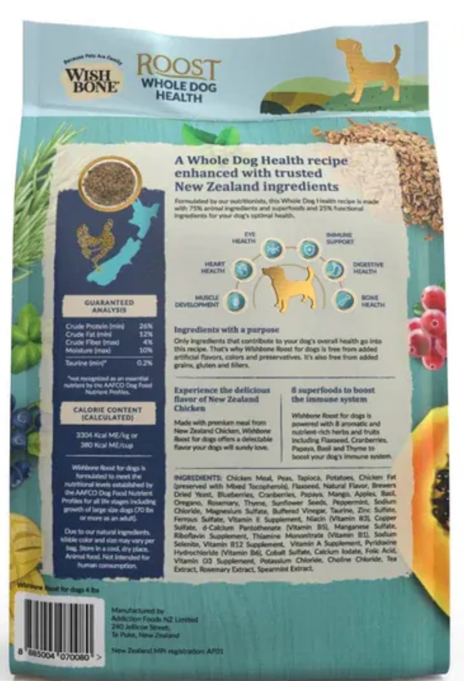 每袋 Wishbone 均由動物營養師精心製作,以保持 75% 動物成分和 25% 功能性成分的健康平衡。這種整體方法確保您的狗狗透過這一袋吃到的食物可以支持健康的心臟、明亮的眼睛、健康的皮膚、閃亮的皮毛、健康的肌肉和骨骼。