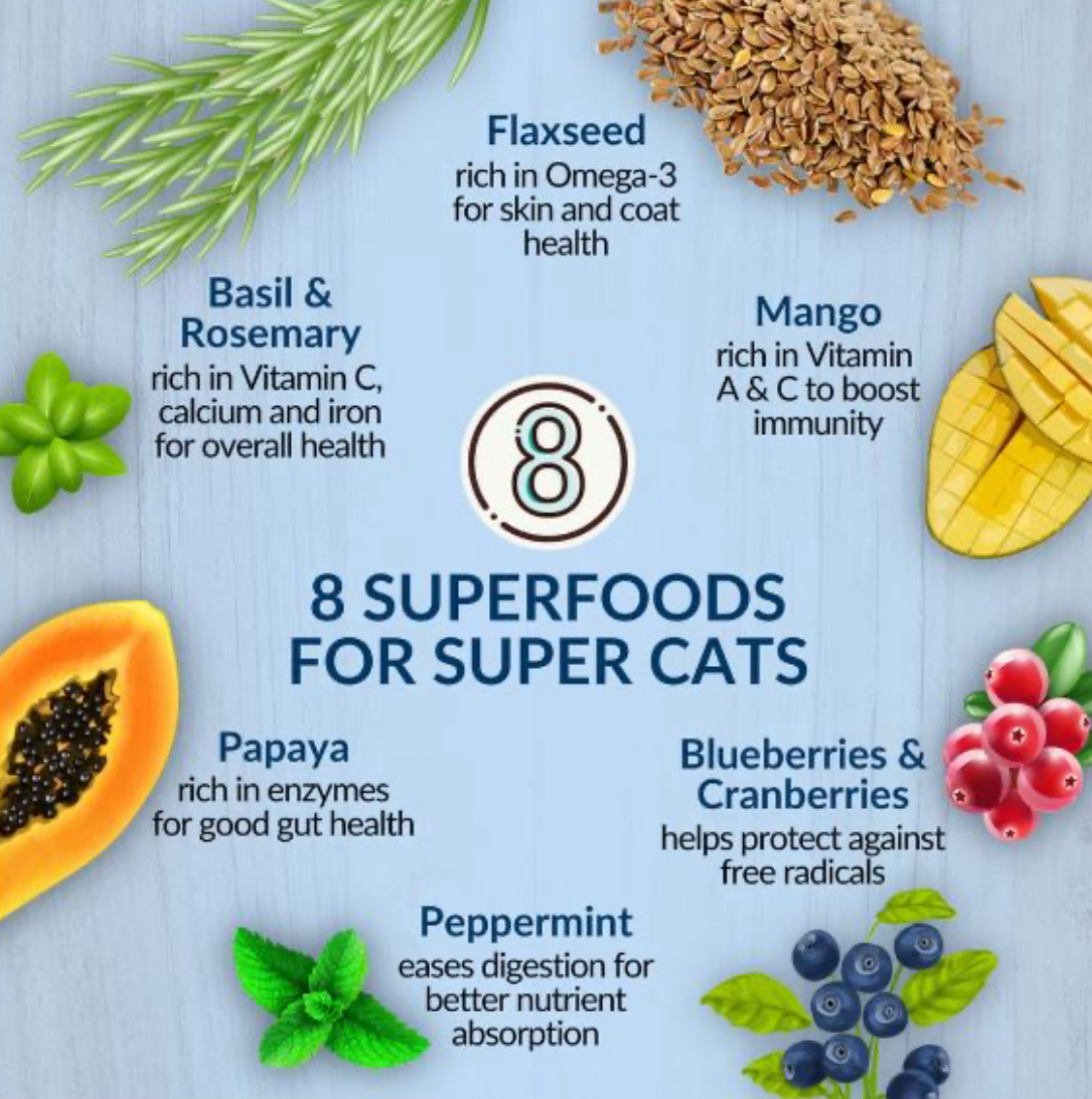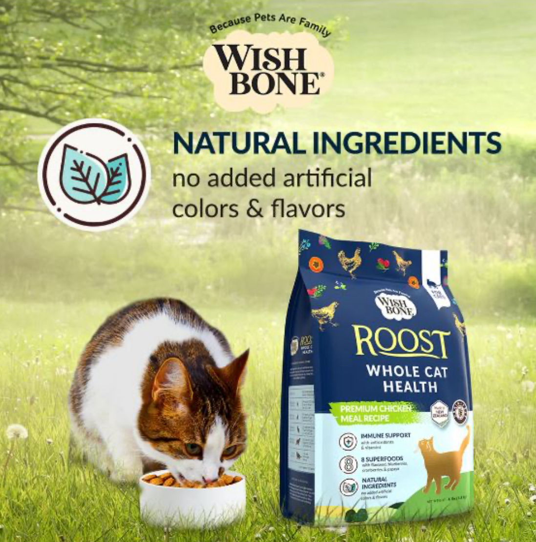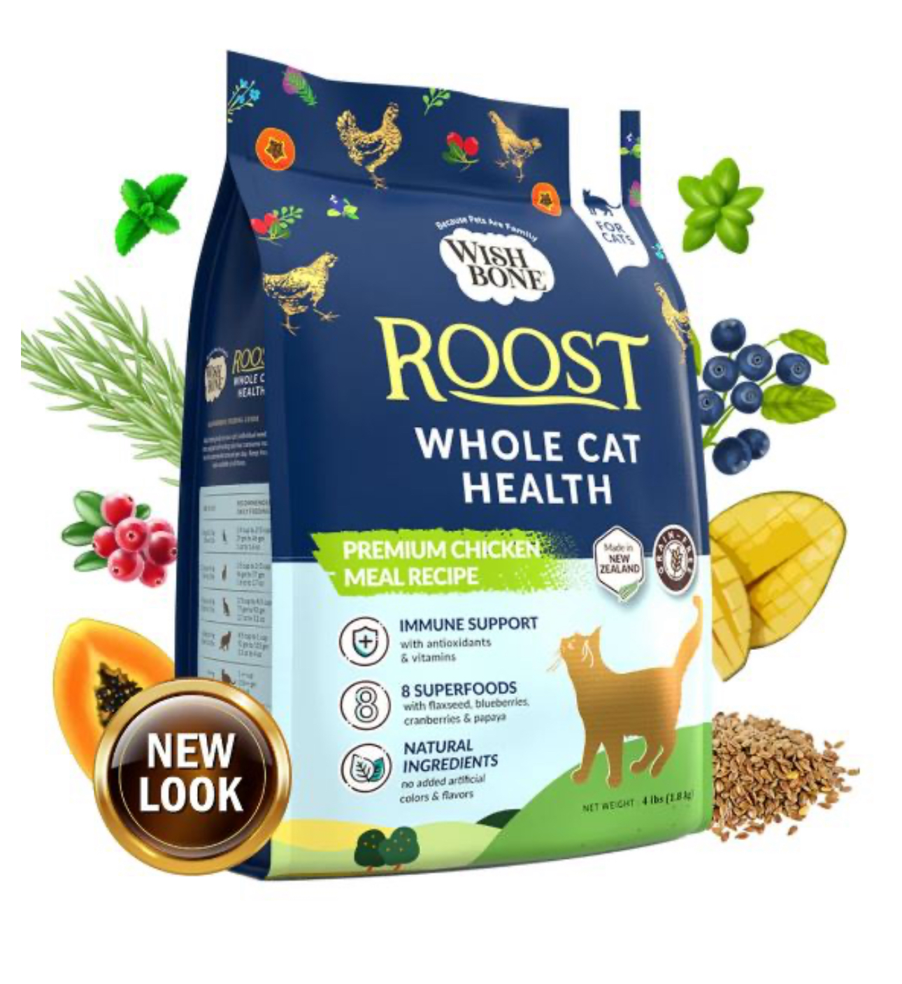 Wishbone Roost 注入了 8 種營養豐富的香草、水果和蔬菜的功效,包括羅勒、蔓越莓、亞麻籽和木瓜。這些,再加上牛磺酸以及必需的維生素和礦物質,可以從內部增強貓的免疫力。